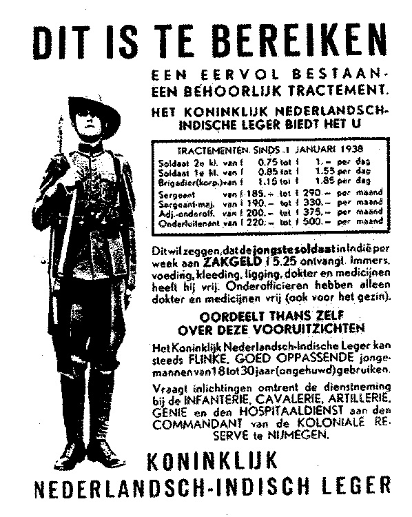 Deze simpele tekst is gemaakt op de melodie van “Manisé oh Manisé” het beroemde krijgslied van het KNIL. Begeleid door de sergeanten Iseger en Bonnema zong ik dit lied voor het eerst tijdens een talentenjacht in de cantine.De rijmen zijn krom maar ik won er wel ƒ 25,= mee, een vermogen. Van het geld is helaas niets meer over. Ik heb het dezelfde avond nog aan onze cantinebaas moeten geven. Hij zou het voor mij beleggen, zei hij.